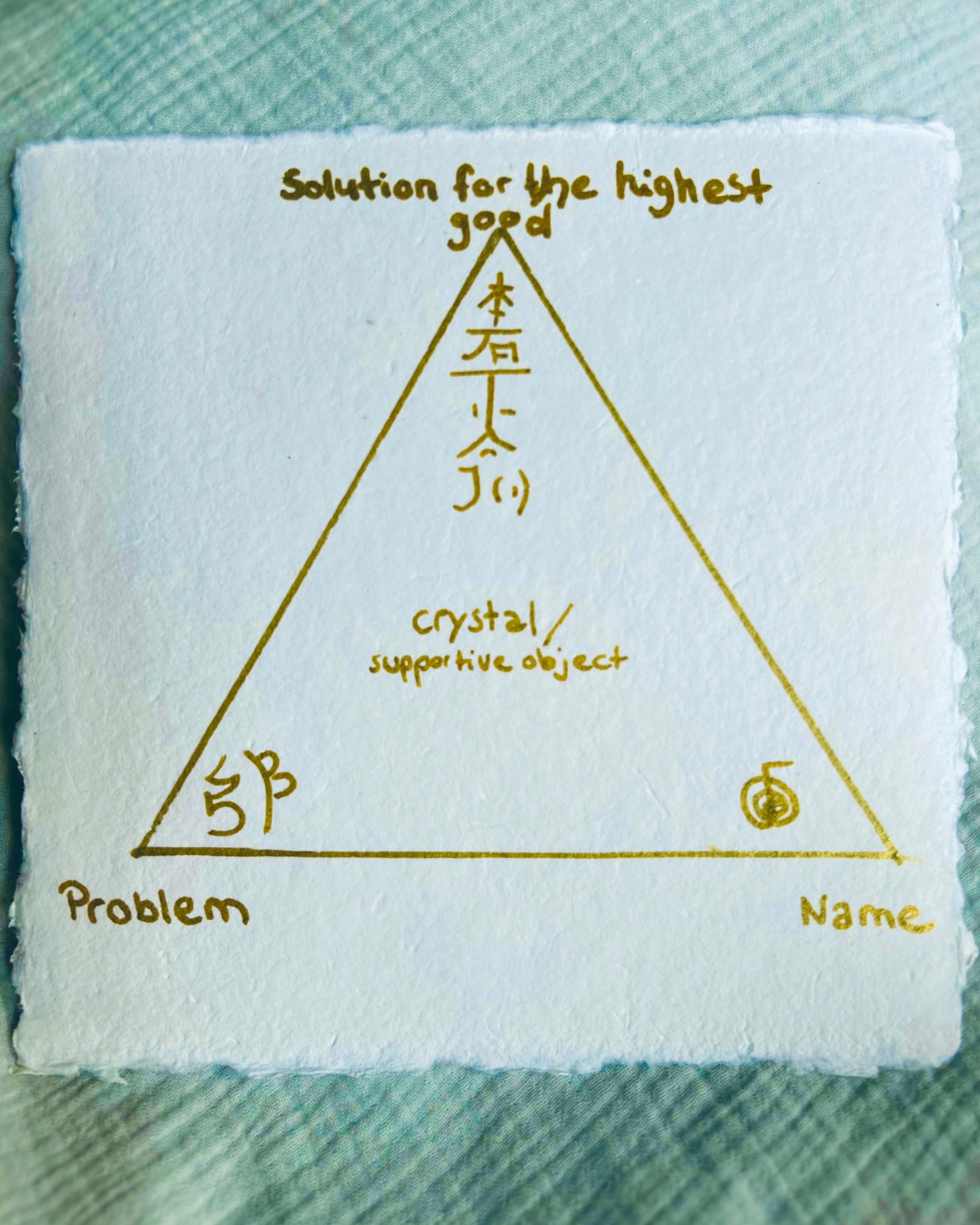 The Reiki Triangle Support is a personalised energetic tool designed to gently harmonise one specific theme or challenge in your life through a continuously active energetic field.